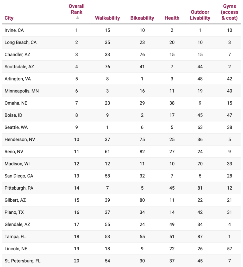 While New York City and Boston might spring to mind when thinking about the quintessential active and walkable city – where keeping moving is often a must rather than an option – some other, less-hyped places around the U.S. make it easy for residents to stay healthy by promoting an active lifestyle. The opposite also holds true, with some big urban hubs surprisingly offering less in this respect.