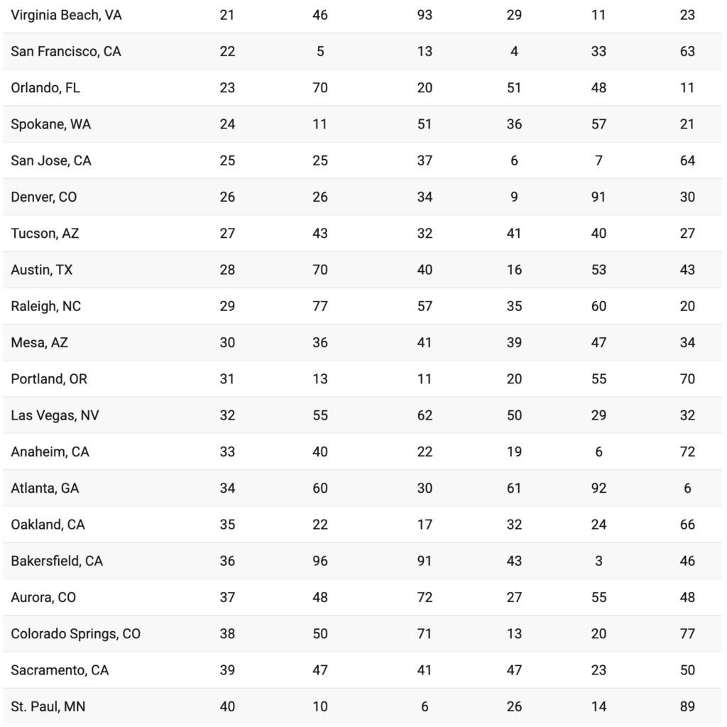 • Mesa landed the 30th spot, ranking 34th for gyms and 36th for walkability.